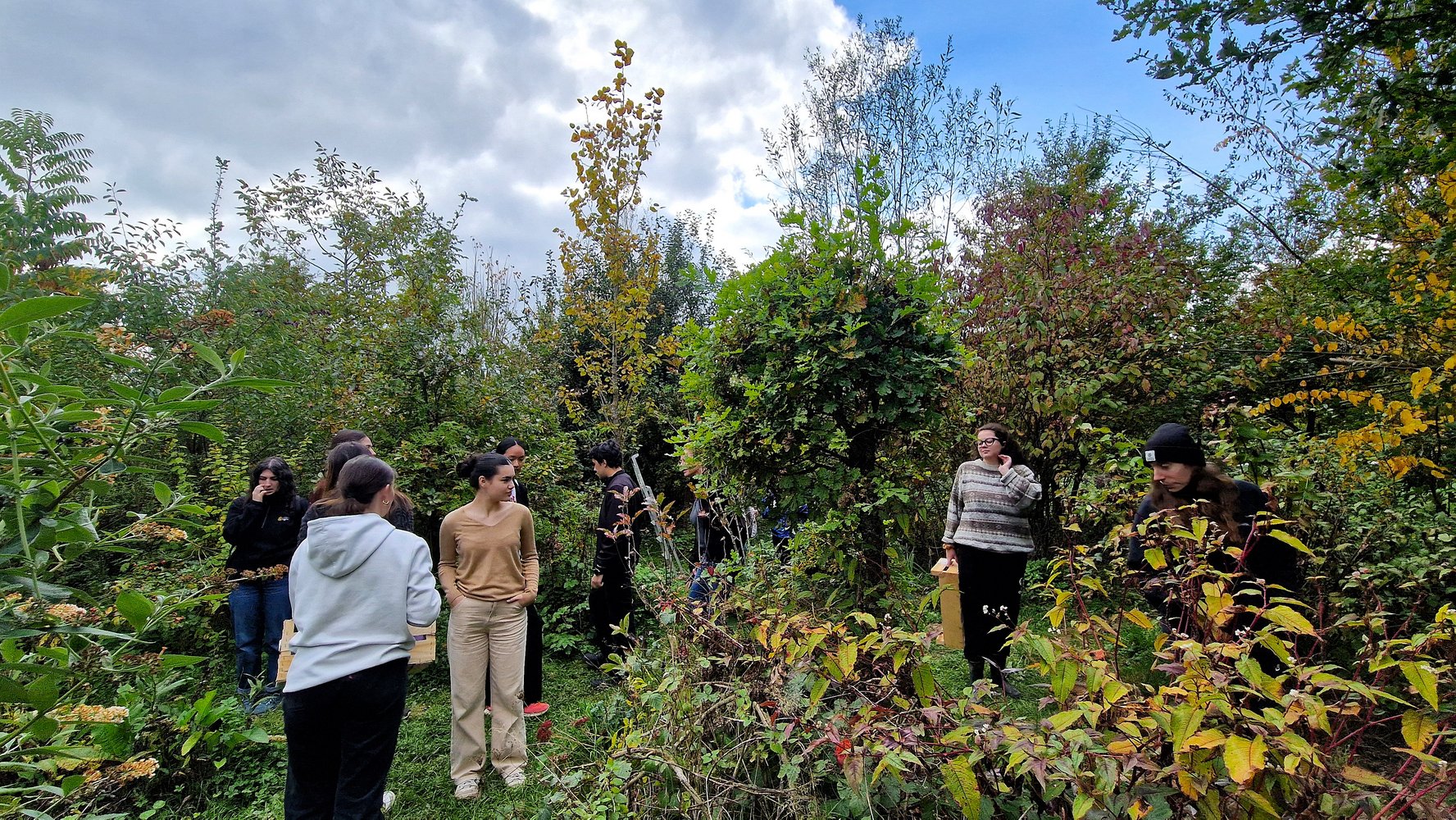 Au fil de la balade, les étudiants ont observé, cueilli et goûté les forestibles — ces aliments issus du jardin-forêt —, découvrant une grande diversité de saveurs et de textures. Ils sont repartis avec leurs récoltes, prêtes à être transformées lors de futurs ateliers… et à nourrir de nouvelles idées de projets !